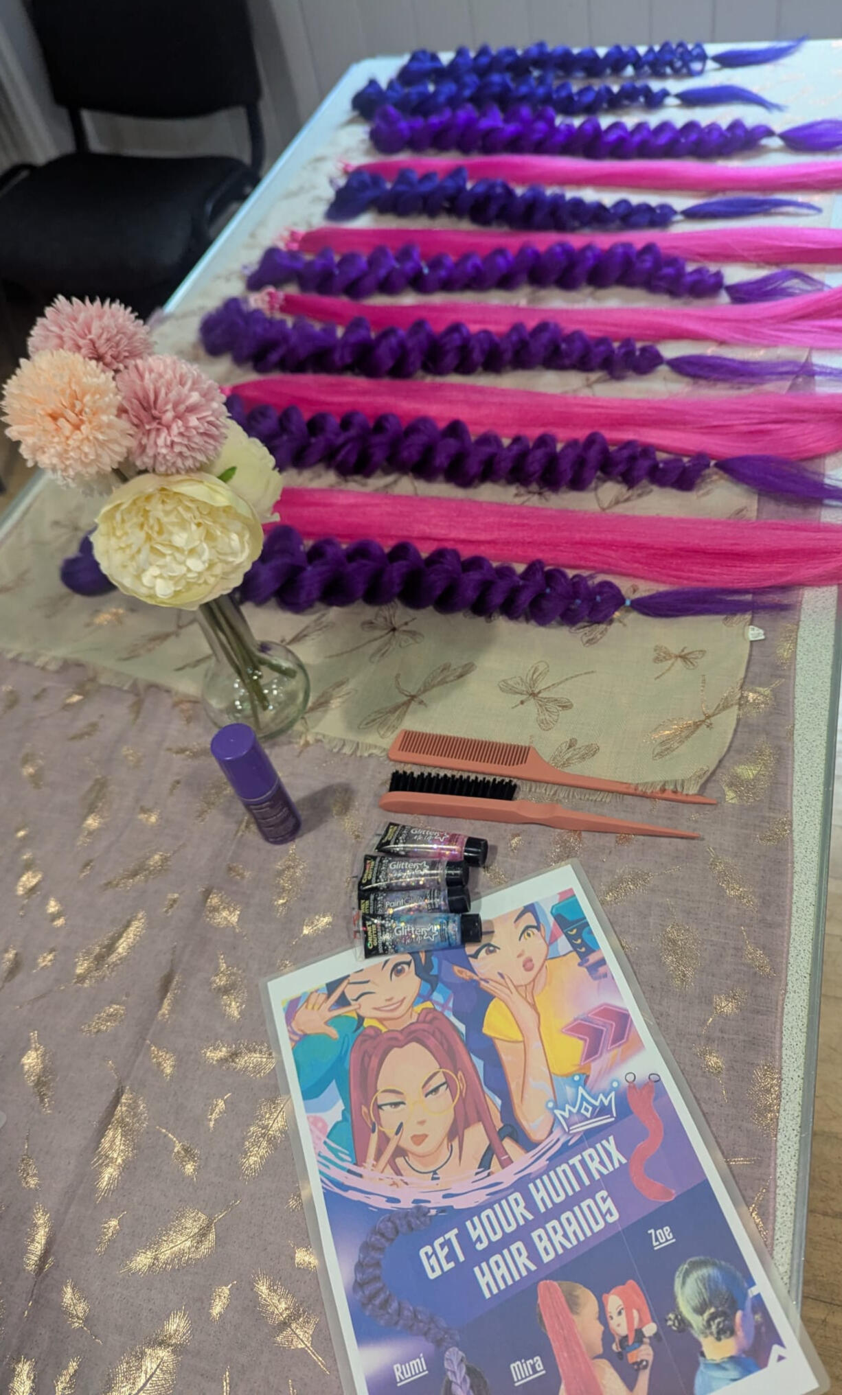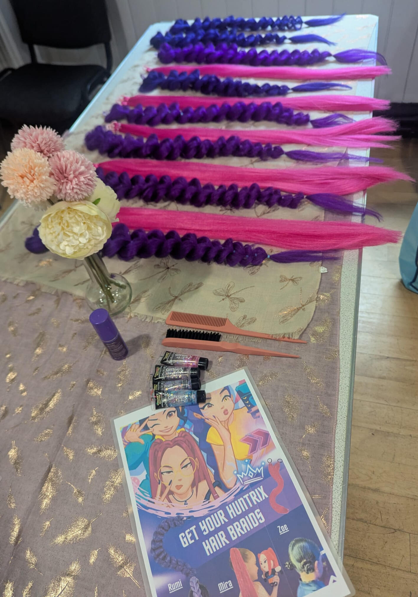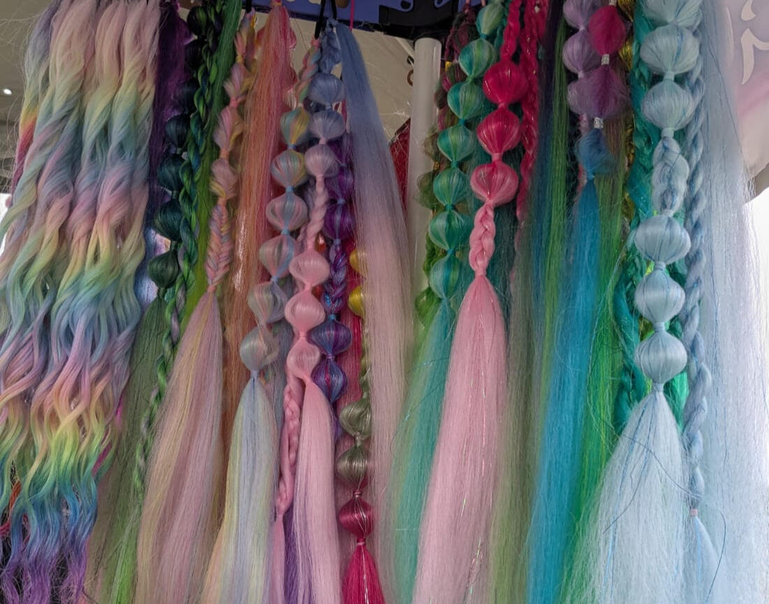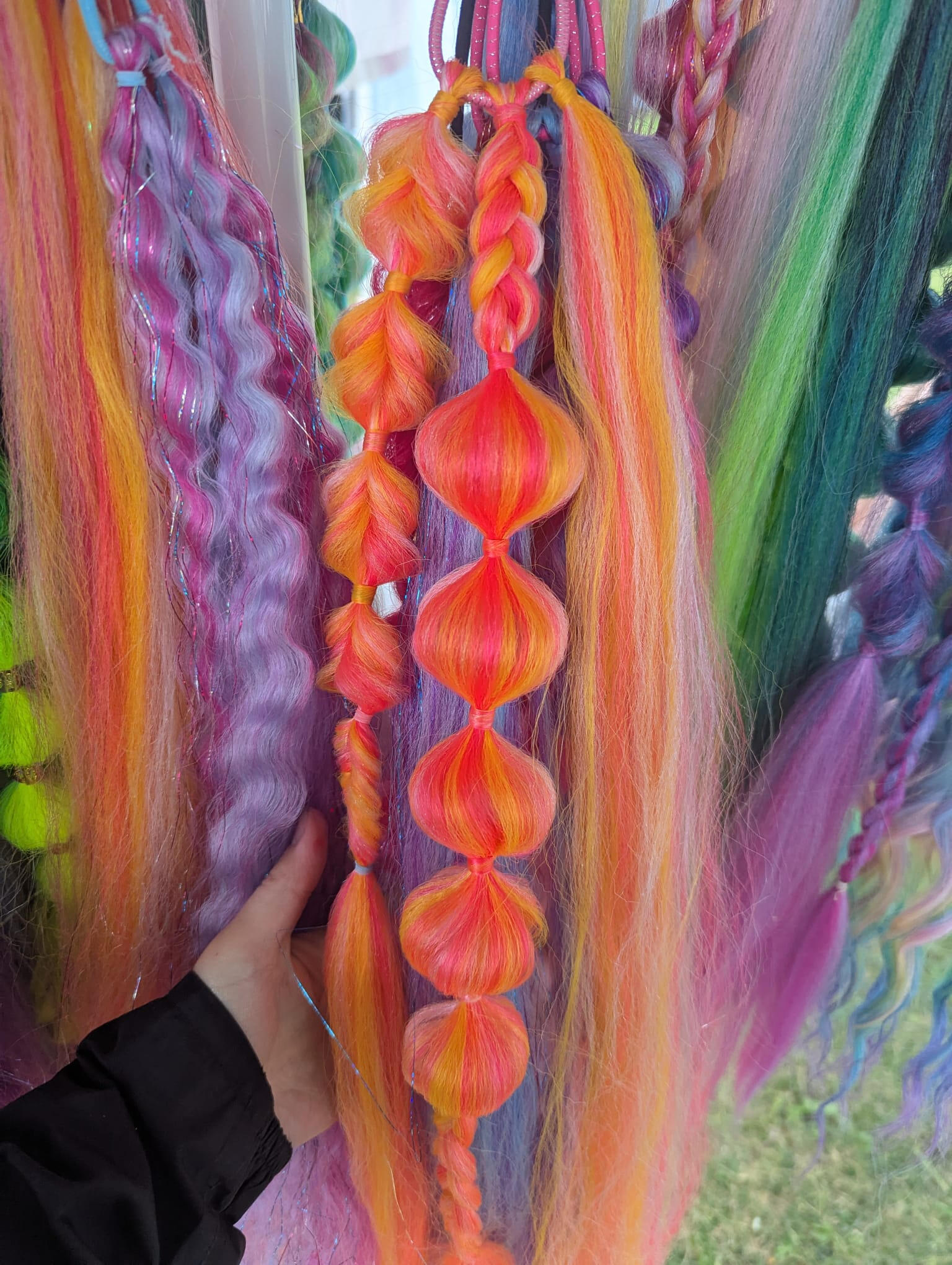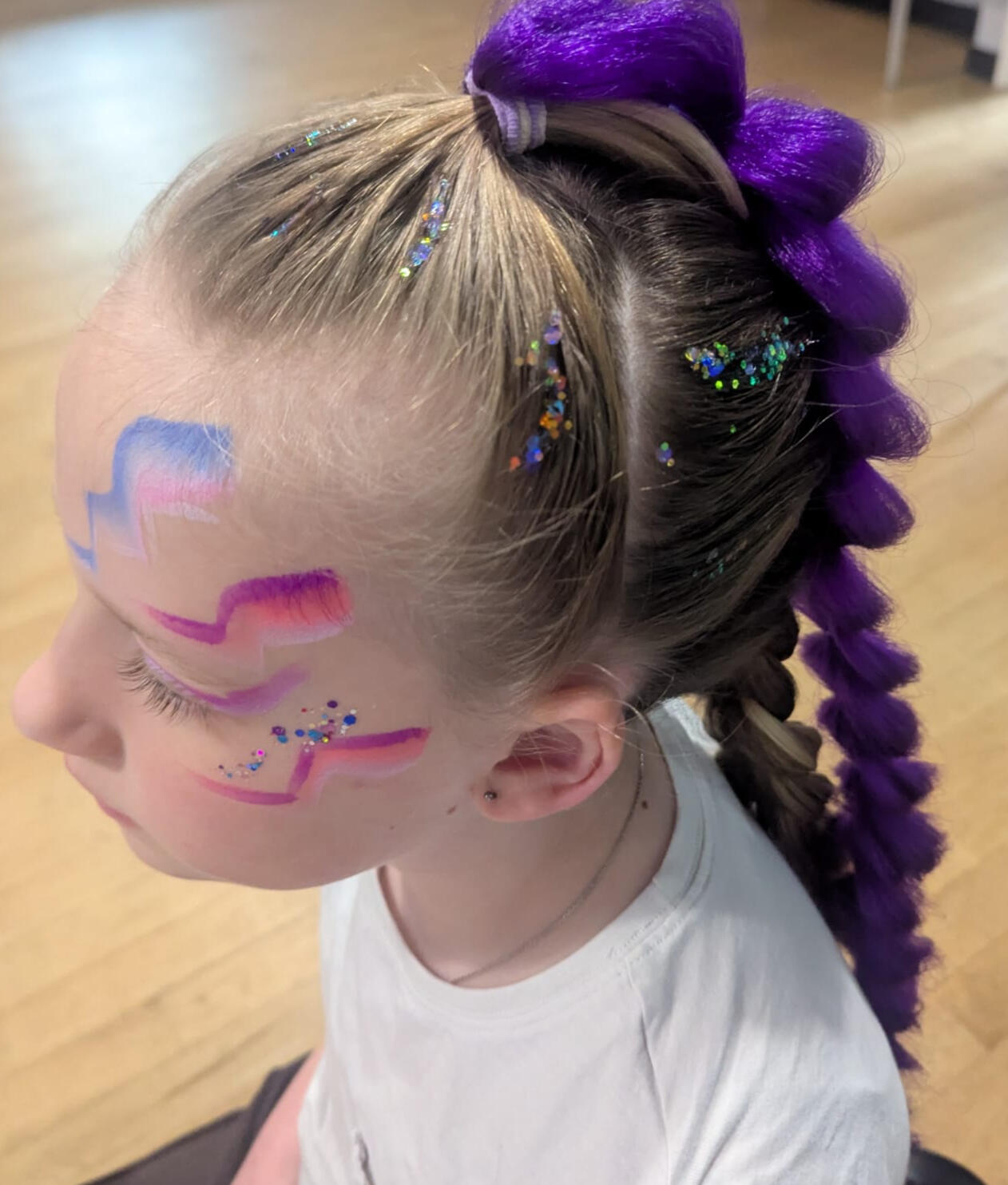 With this package our talented glitter artist will provide festival glitter hair and a choice of tie in bubble braids these are custom made and can be talored to fit in with your theme this package is for larger events and will cater for 50+ guests