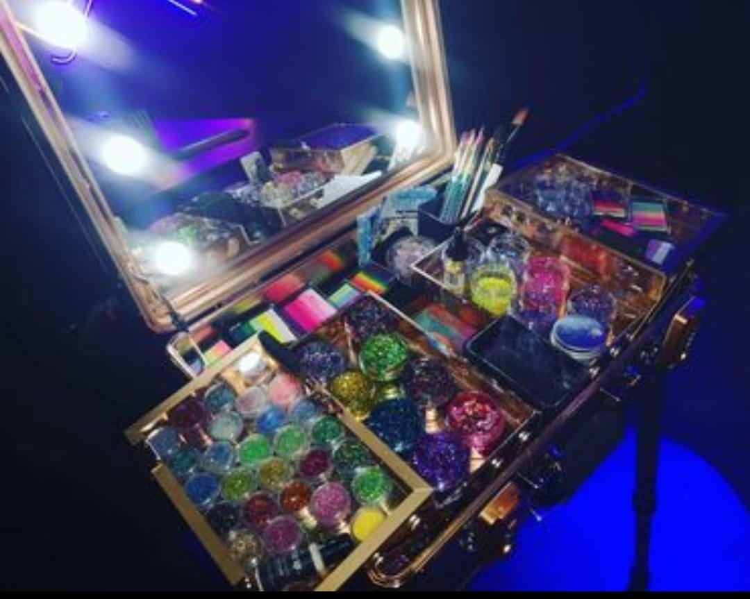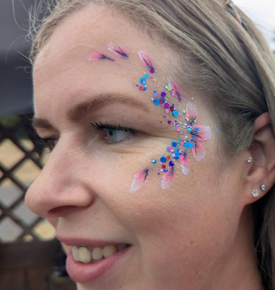 Bring the excitement and vibrant energy of festivals to your corporate event with our glitter bar and glitter face painting. Perfect for company parties, team-building days, or client celebrations, our glitter bar adds fun and colourful sparkles With a wide range of designs ranging from subtle sparkle to bold festival-ready looks, we create personalised experiences that reflect the mood and theme of your event. Our artists ensure that every guest leaves feeling joyful and energised, adding a creative flair that helps your corporate gathering stand out.