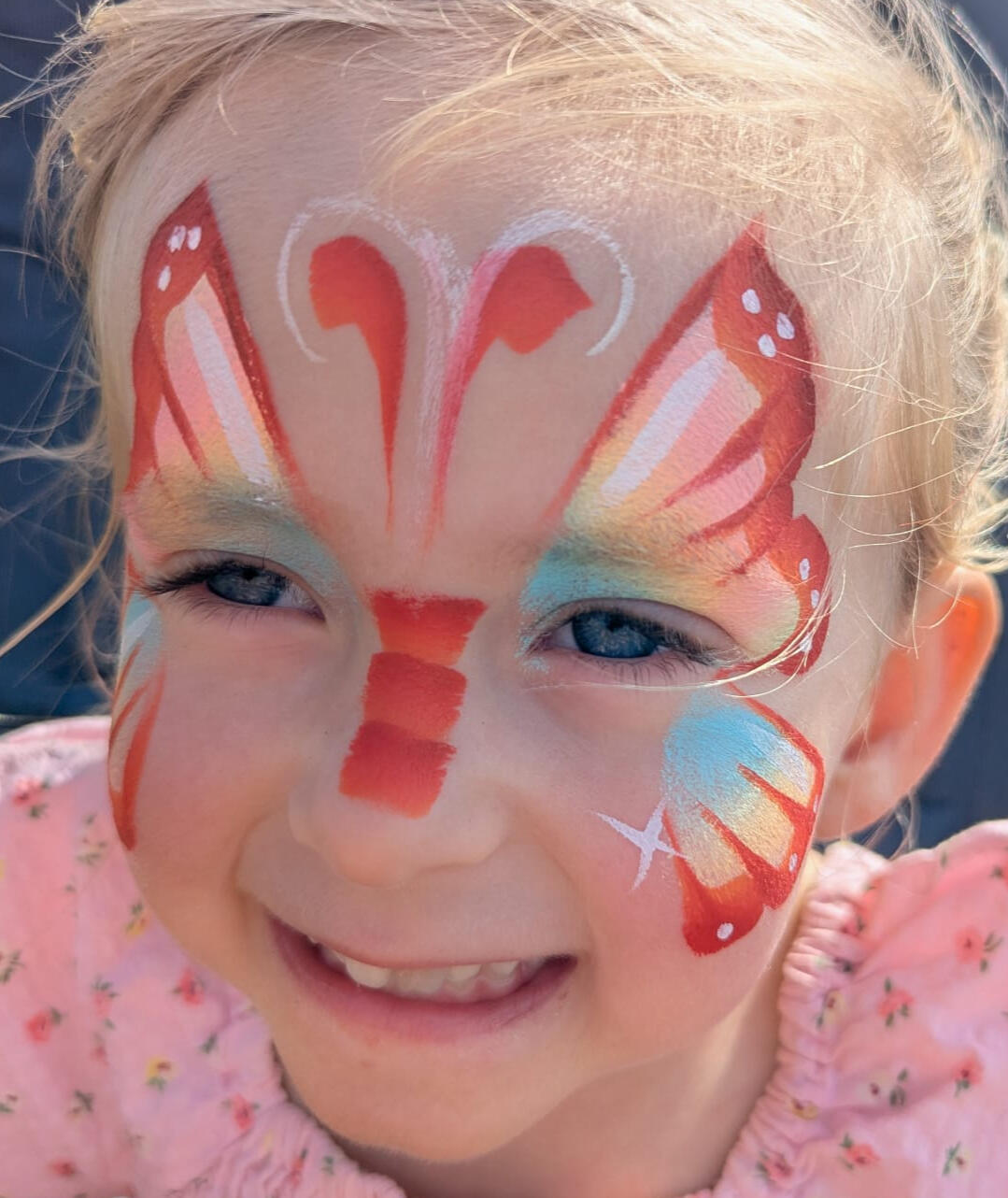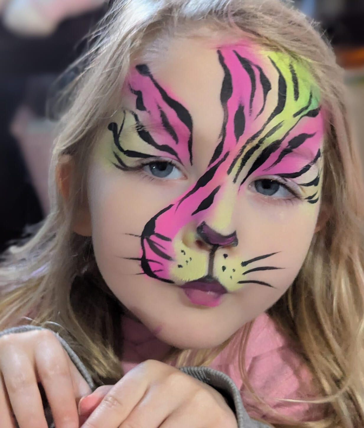 Our Face Painter is very talented and versatile with over 7 years expeirence and has attended a wide range of events including school fetes, charity events, pop up markets, festivals, corporate events, private events and weddings.