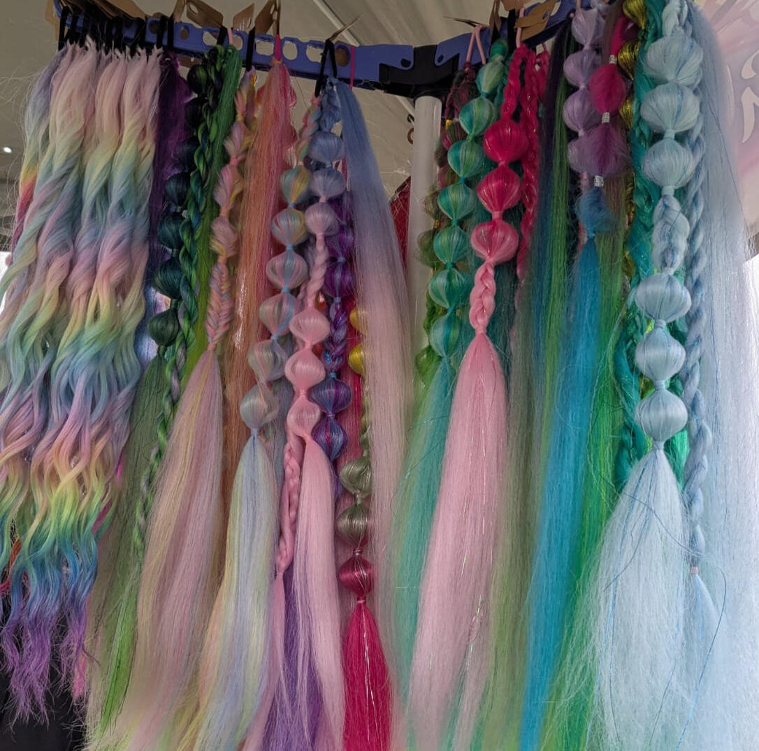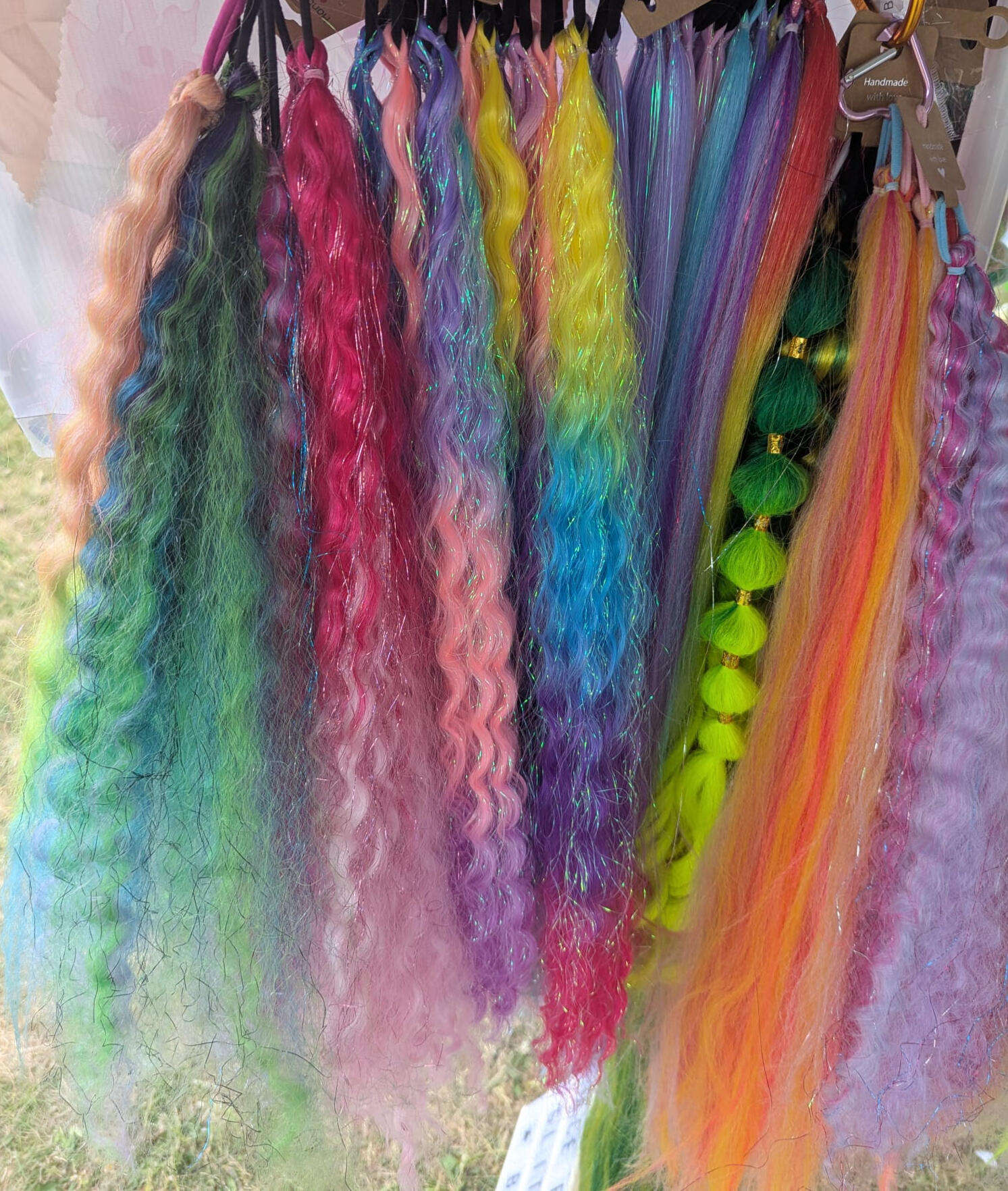 We have a colourful range of tie-in ponytail extensions perfect instant party/festival hair must have. Simply tie them in on top of your normal ponytail, bunches or buns and get creative with your styling. They are just as easy to remove too, meaning that you can change your mind as often as you like.But the absolute best part is that they are completely reusable!